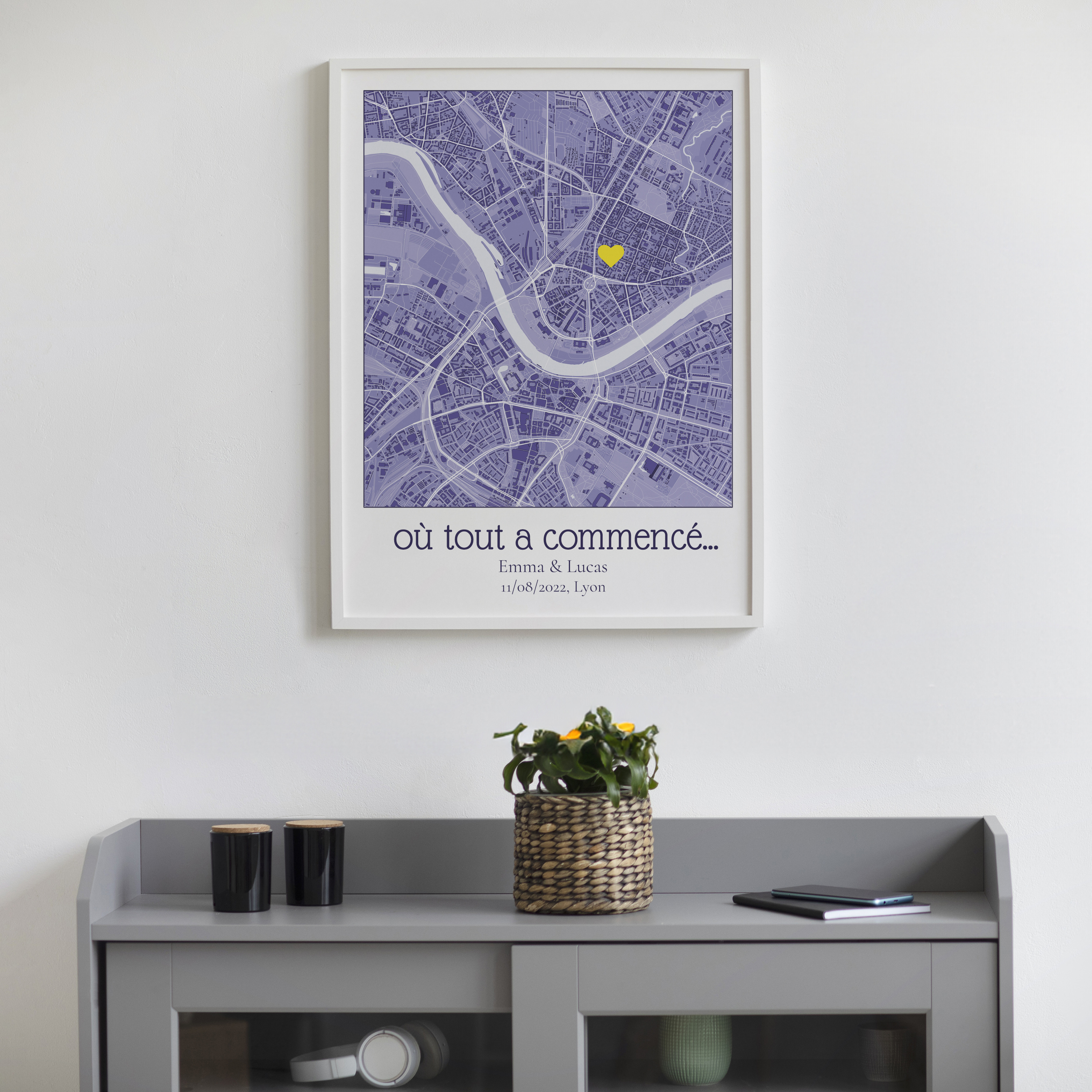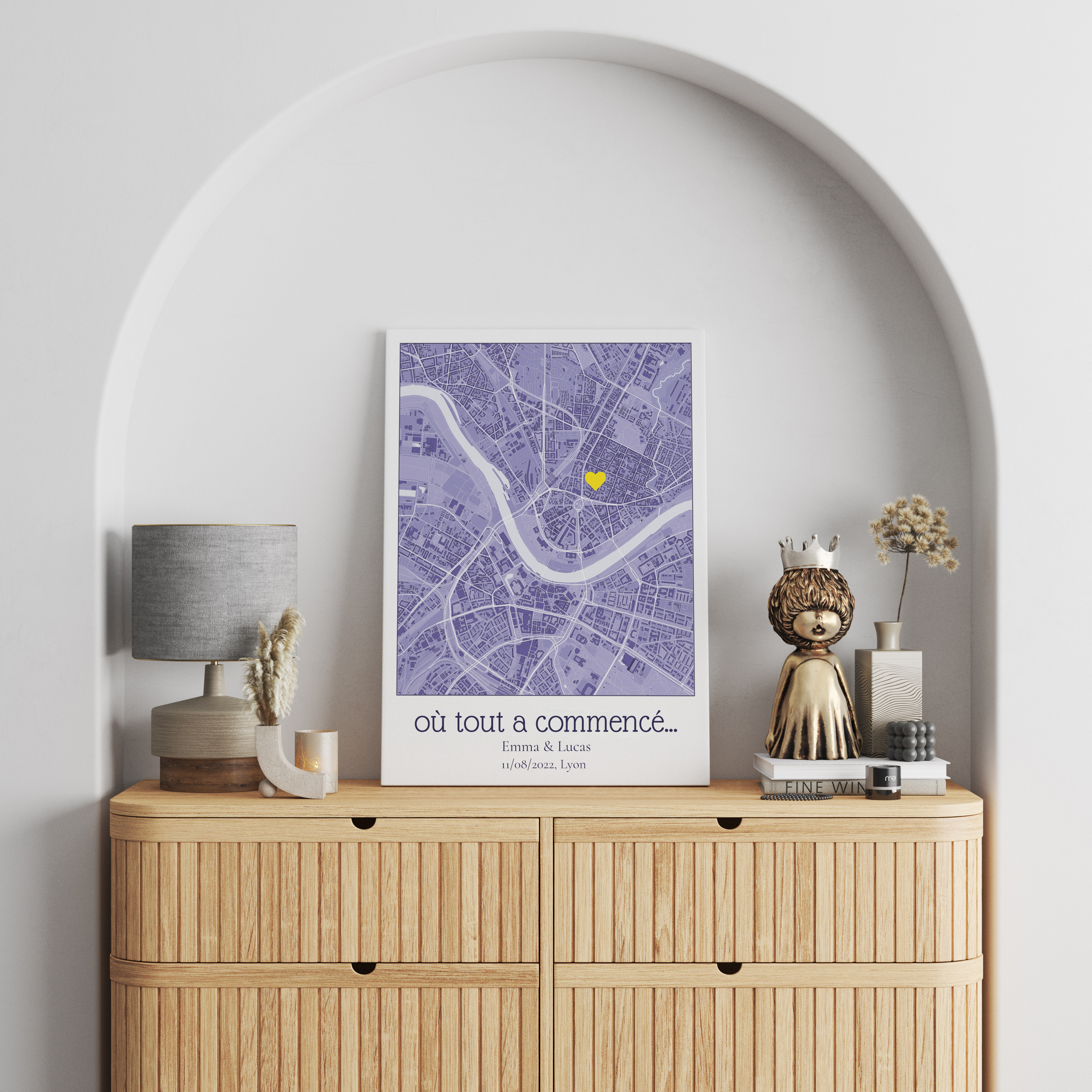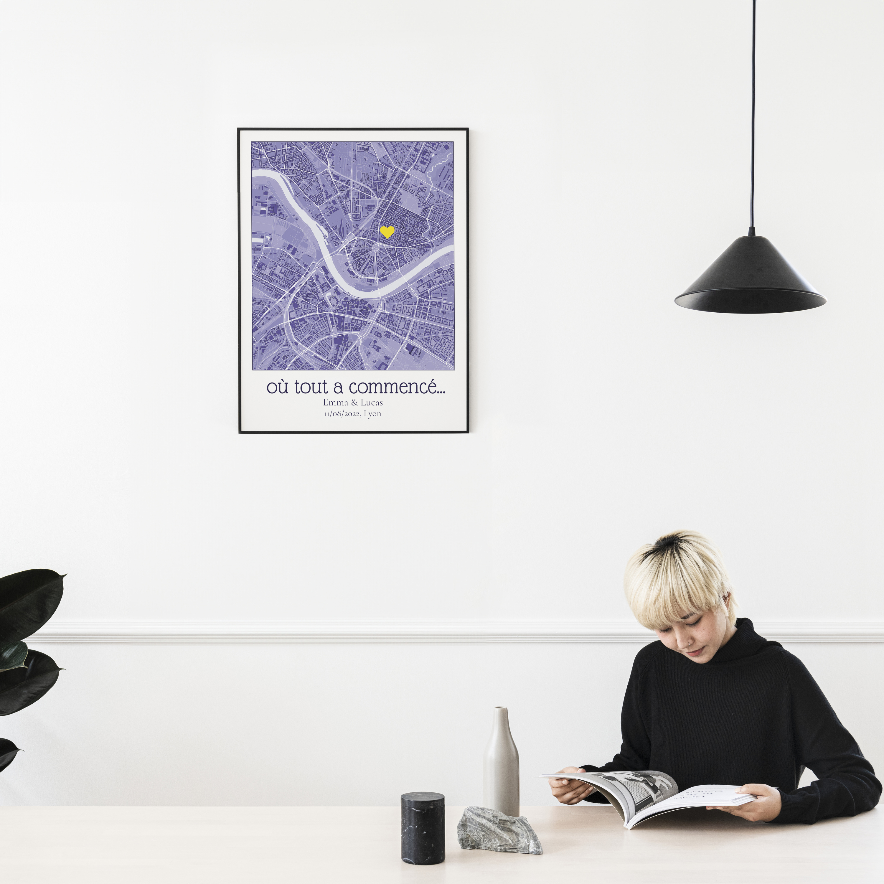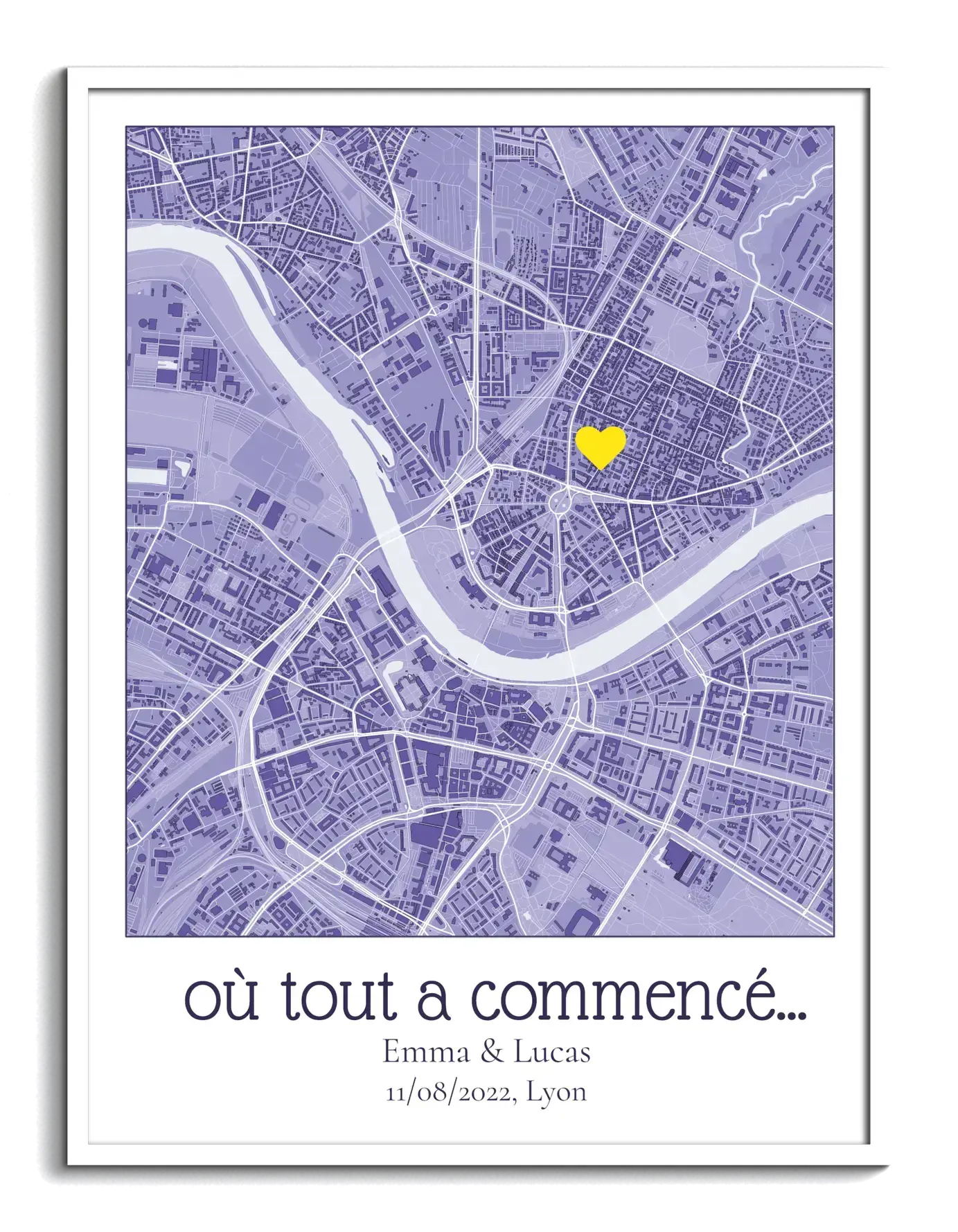 Laissez libre cours à votre créativité en suivant quelques étapes simples: saisissez une adresse ou un lieu, choisissez votre design parmi plusieurs styles, personnalisez votre texte et ajoutez des symboles pour marquer des endroits spéciaux. Finalisez votre œuvre d’art en sélectionnant le support qui vous conviendra le mieux, qu’il soit tangible ou numérique.